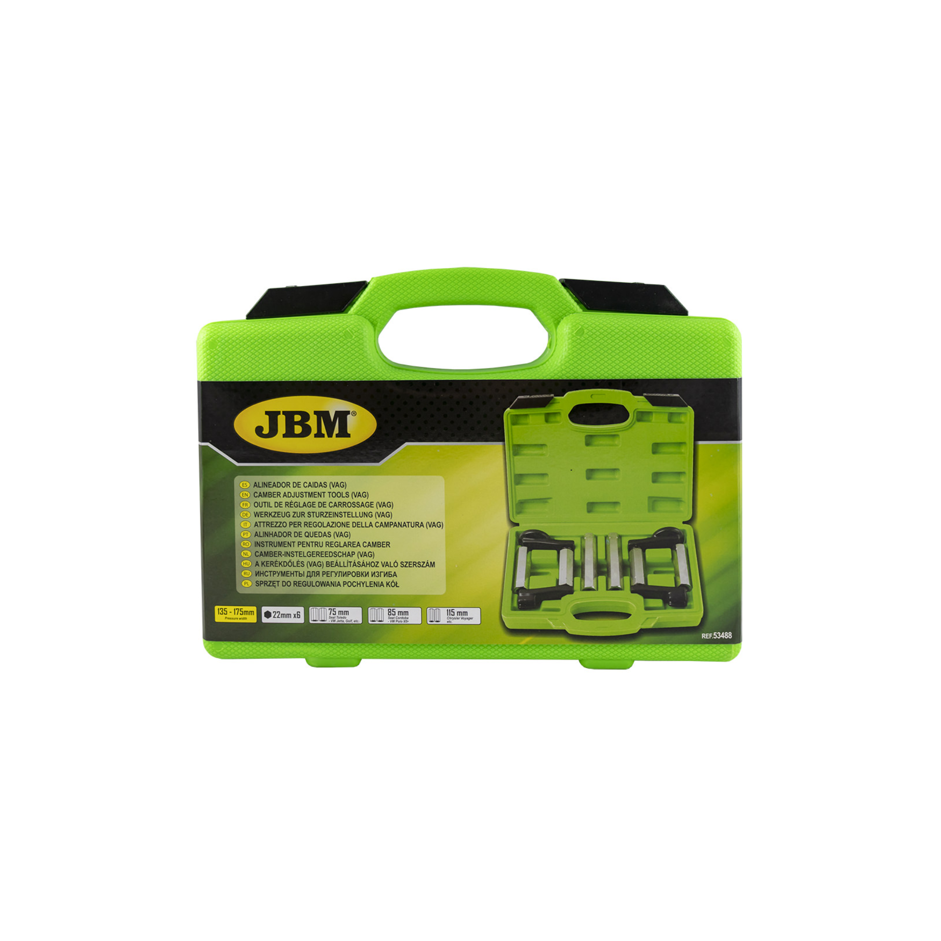 Alinhador do camber grupo VAGJ08 53488Fabricante: JBM Disponibilidade: Desculpe, produto sem stock! 88,56 € Iva incluído Quantidade: ComprarAdicionar à lista de comparação Solicitar Cotação }Permite que uma única pessoa ajuste o ângulo de cambagem da roda.Inclui:eixo hexagonal de 22 mm3 comprimentos diferentes para uma ampla gama de aplicações:75 mm: Seat Toledo | VW Jetta/Golf;85 mm: Seat Cordoba | VW Polo (a partir de 1995);115 mm: Chrysler Voyager.