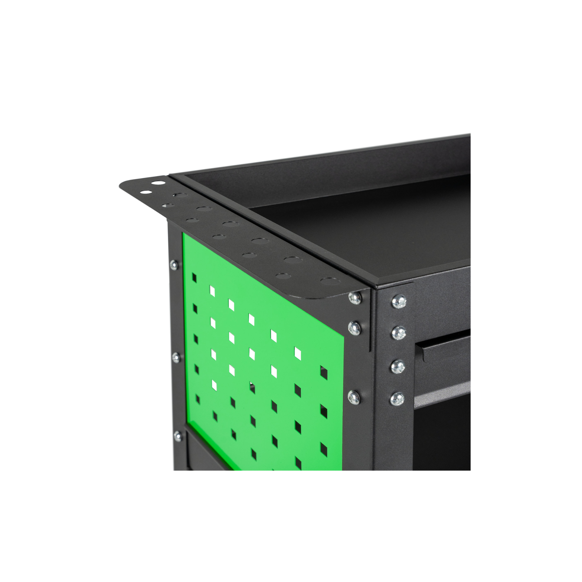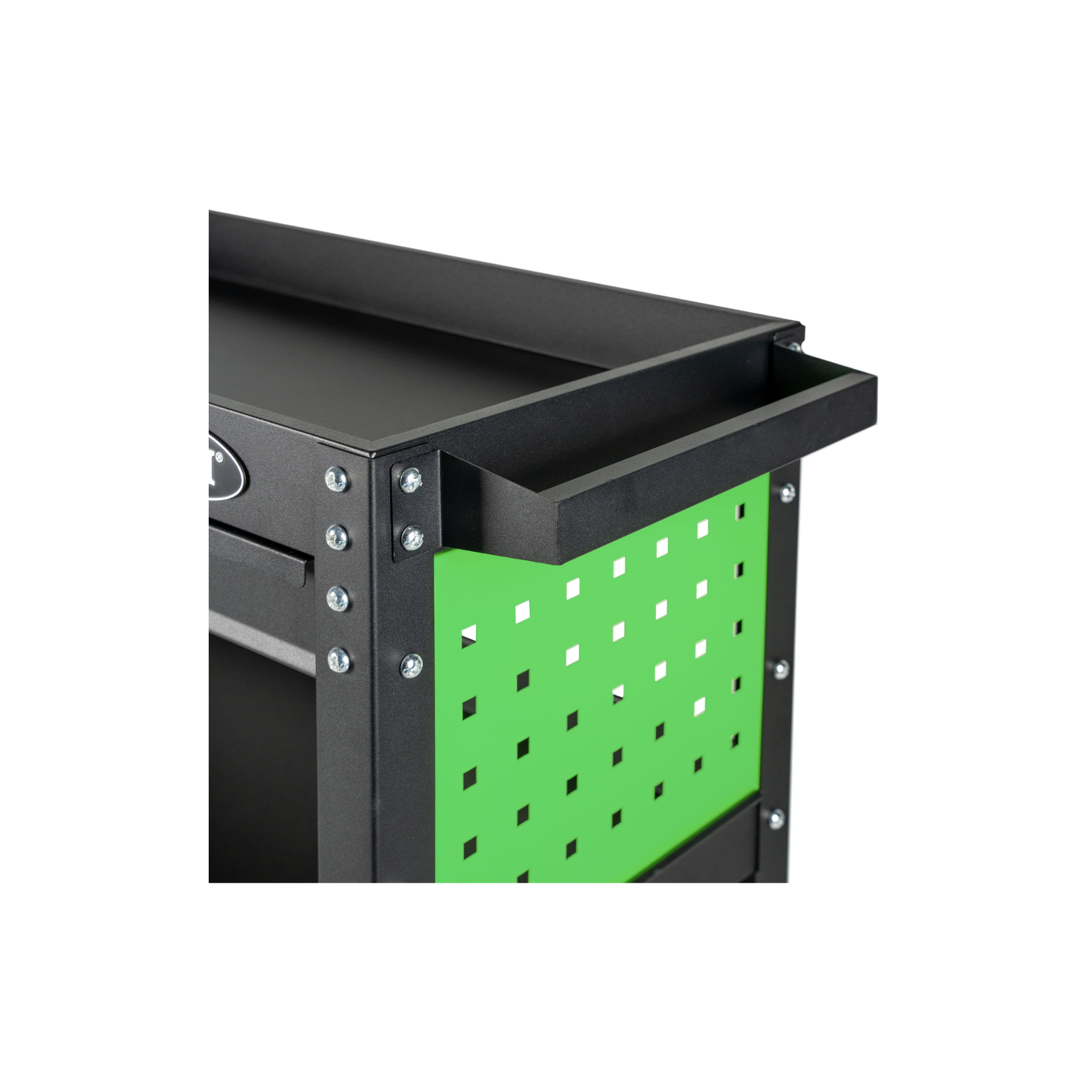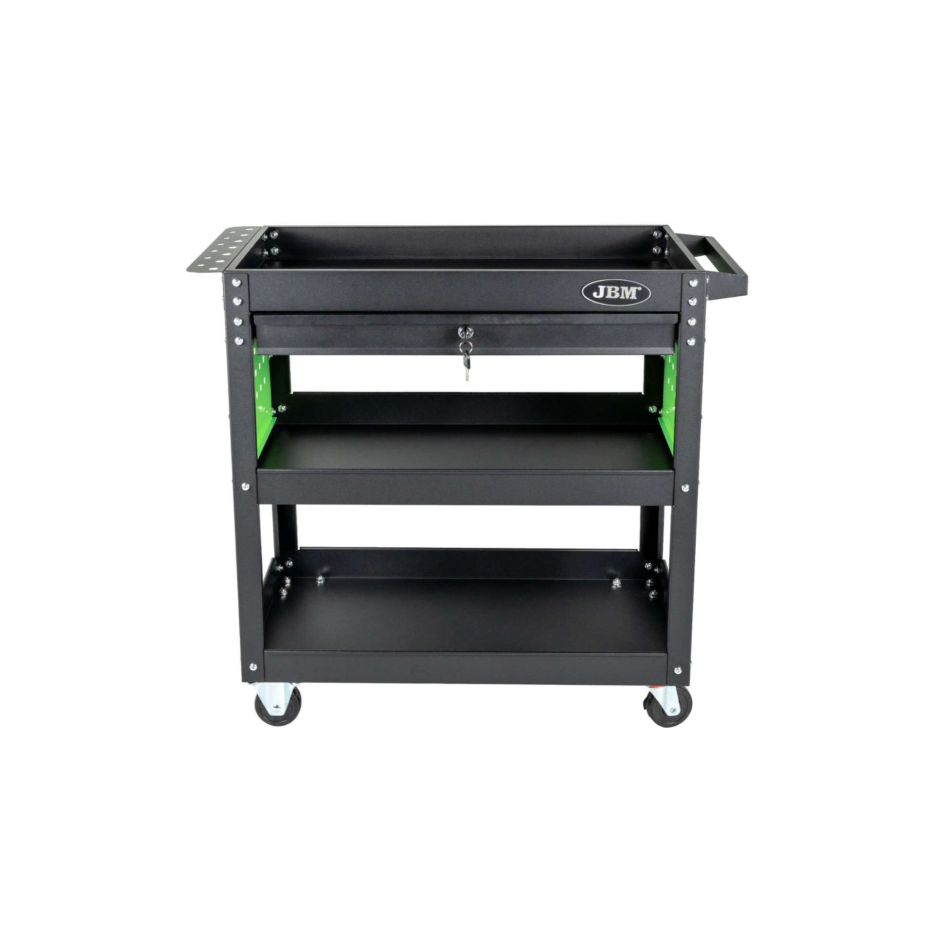 O carrinho oferece uma combinação de tabuleiros abertos e uma gaveta. As suas rodas giratórias facilitam a deslocação do carrinho em diferentes superfícies