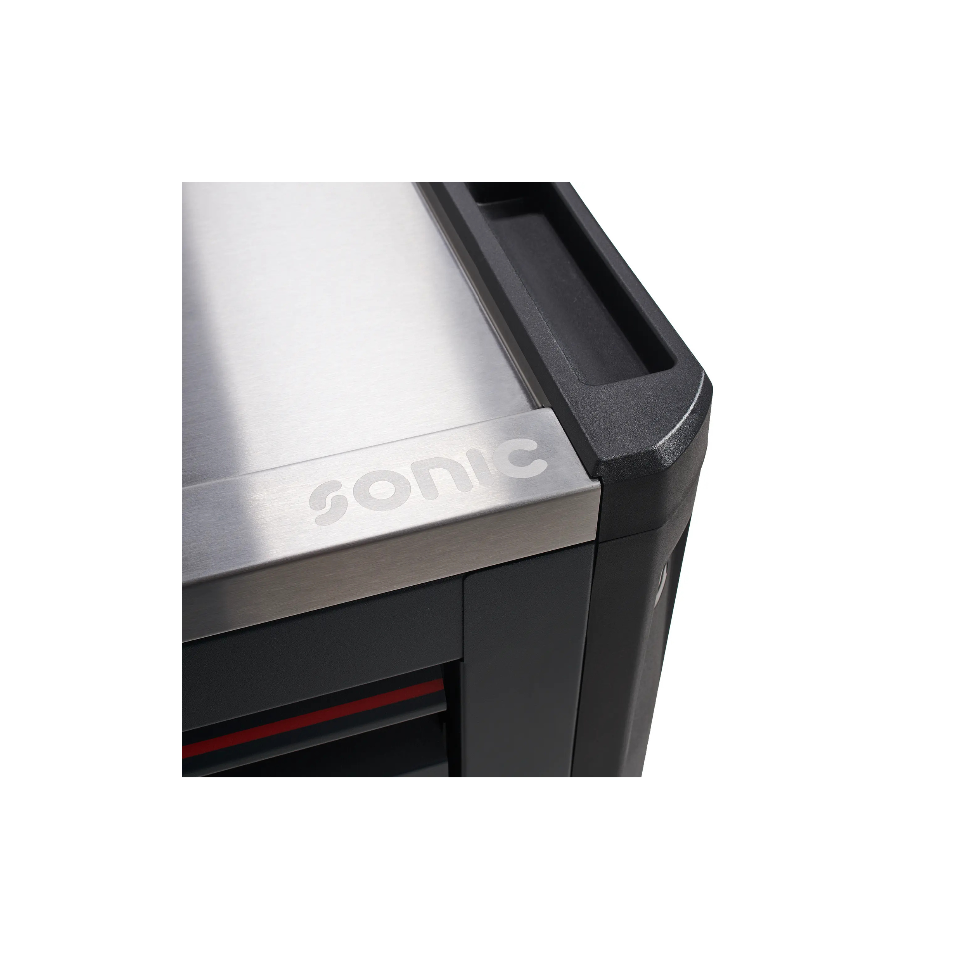 As gavetas rasas são equipadas com corrediças telescópicas de esferas de 60 kg