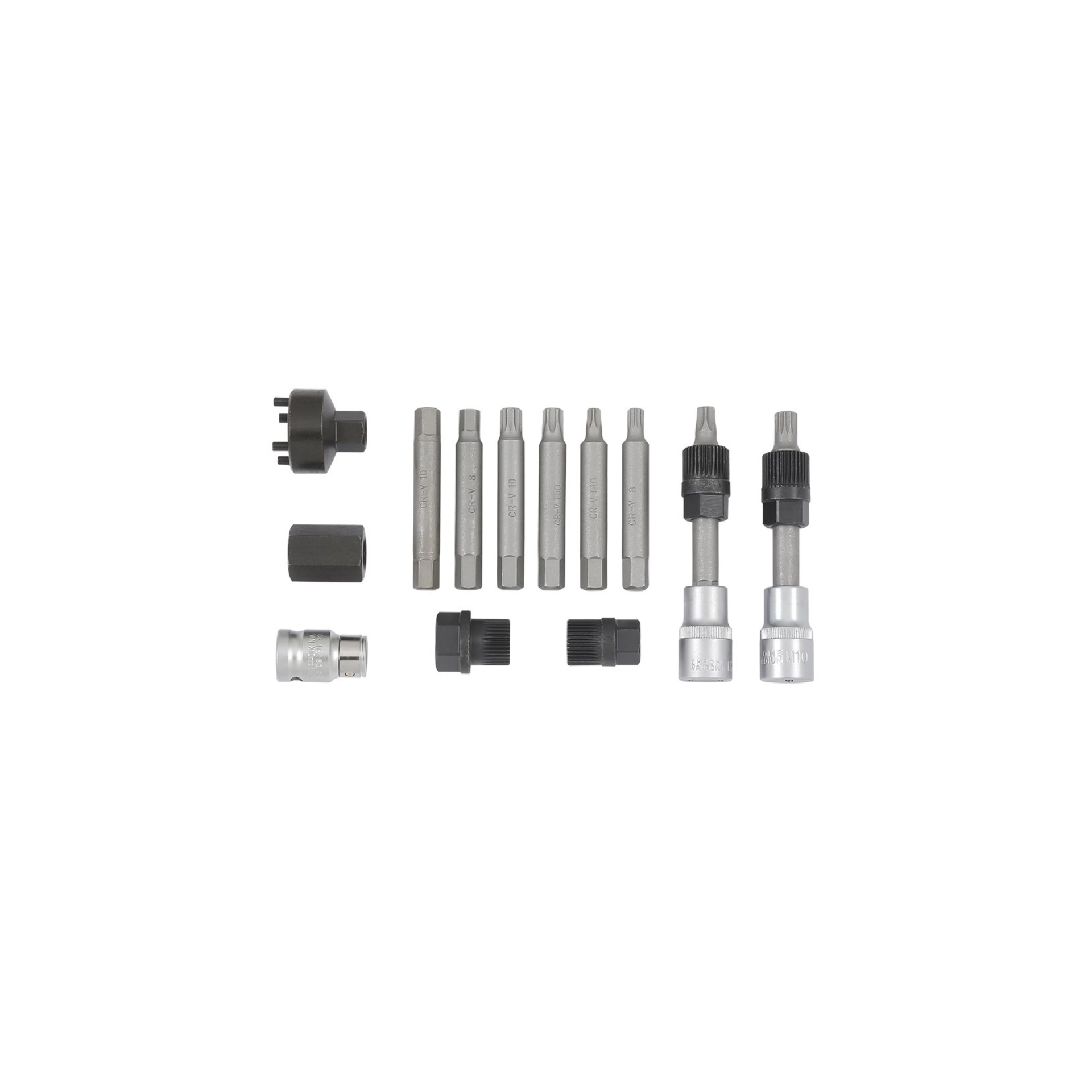 806001-1 - Combinada T50x113mm806001-2 - Combinada M10x113mm806001-3 - Hexagonal 15mm x 33 dentes806001-4 - Hexagonal 22mm x 33 dentes806001-5 - Hexagonal 22mm806001-6 - Aplicador redondo 35mm806001-7 - Porta-bits 1/2" x 10mm806001-8 - Bit 10mm hex. x 75mm; T40806001-9 - Bit 10mm hex. x 75mm; T50806001-10 - Bit 10mm hex. x 75mm; M8806001-11 - Bit 10mm hex. x 75mm; M10806001-12 - Bit 10mm hex. x 75mm; Hex. 8mm806001-13 - Bit 10mm hex. x 75mm; Hex. 10mm