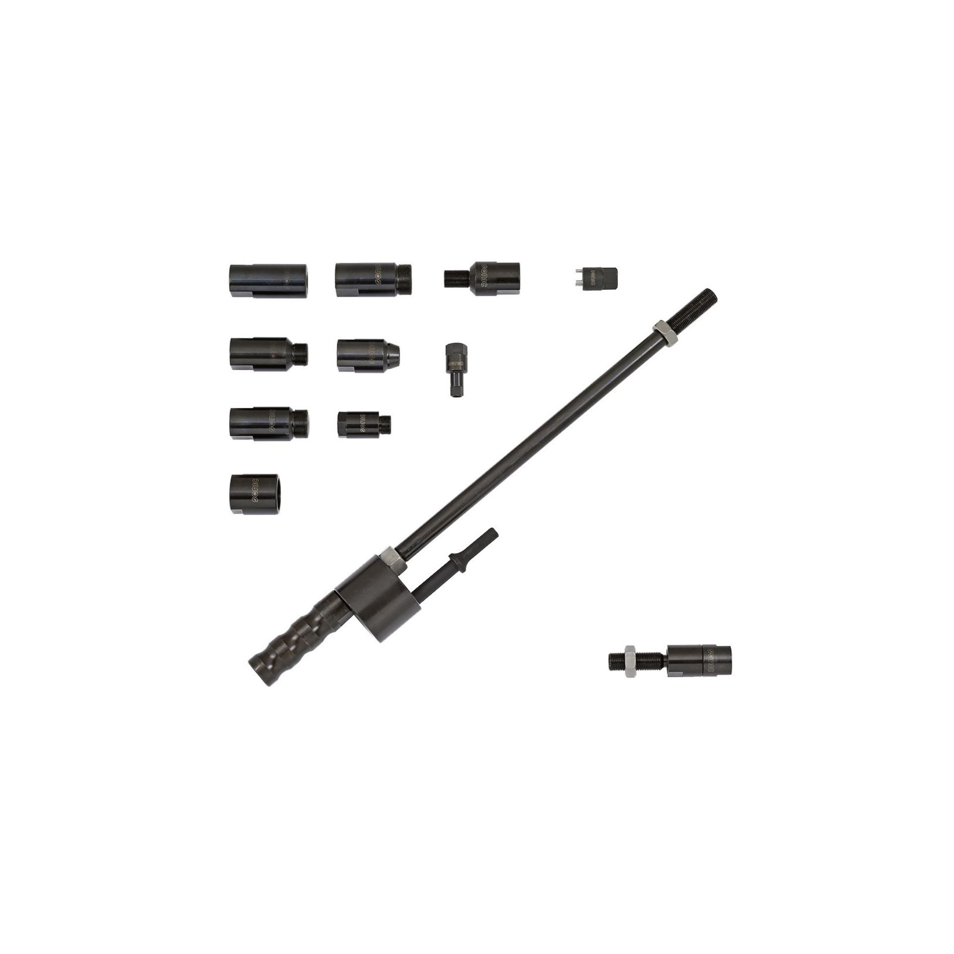 Conjunto indispensável para a remoção profissional de injetores do cabeçote. Os diversos adaptadores e acessórios fornecidos tornam o conjunto adequado para a maioria dos injetores diesel, esta ferramenta permite que as vibrações e golpes gerados por um martelo pneumático sejam utilizados para arrancar peças. Equipado com rosca externa de 5/8 ’’ para aparafusar todos os adaptadores de martelo com rosca interna semelhante. Inclui sete adaptadores de injetores diesel: para Bosch Dual-Port, Delphi, Denso, Denso M16, Siemens (2x), M12 de alta pressão. Com removedor de injetor Bosch e removedor de sede de válvula para Denso.