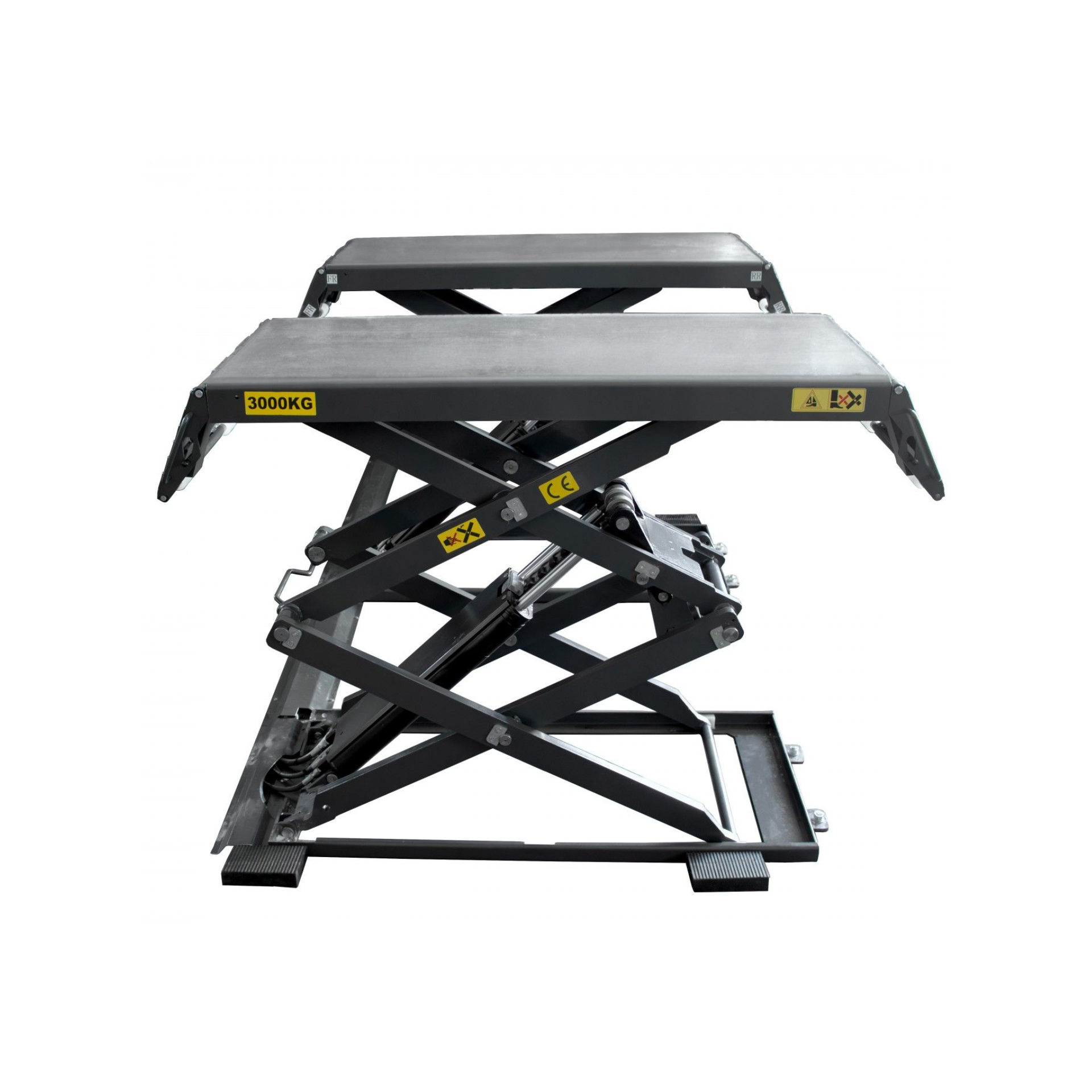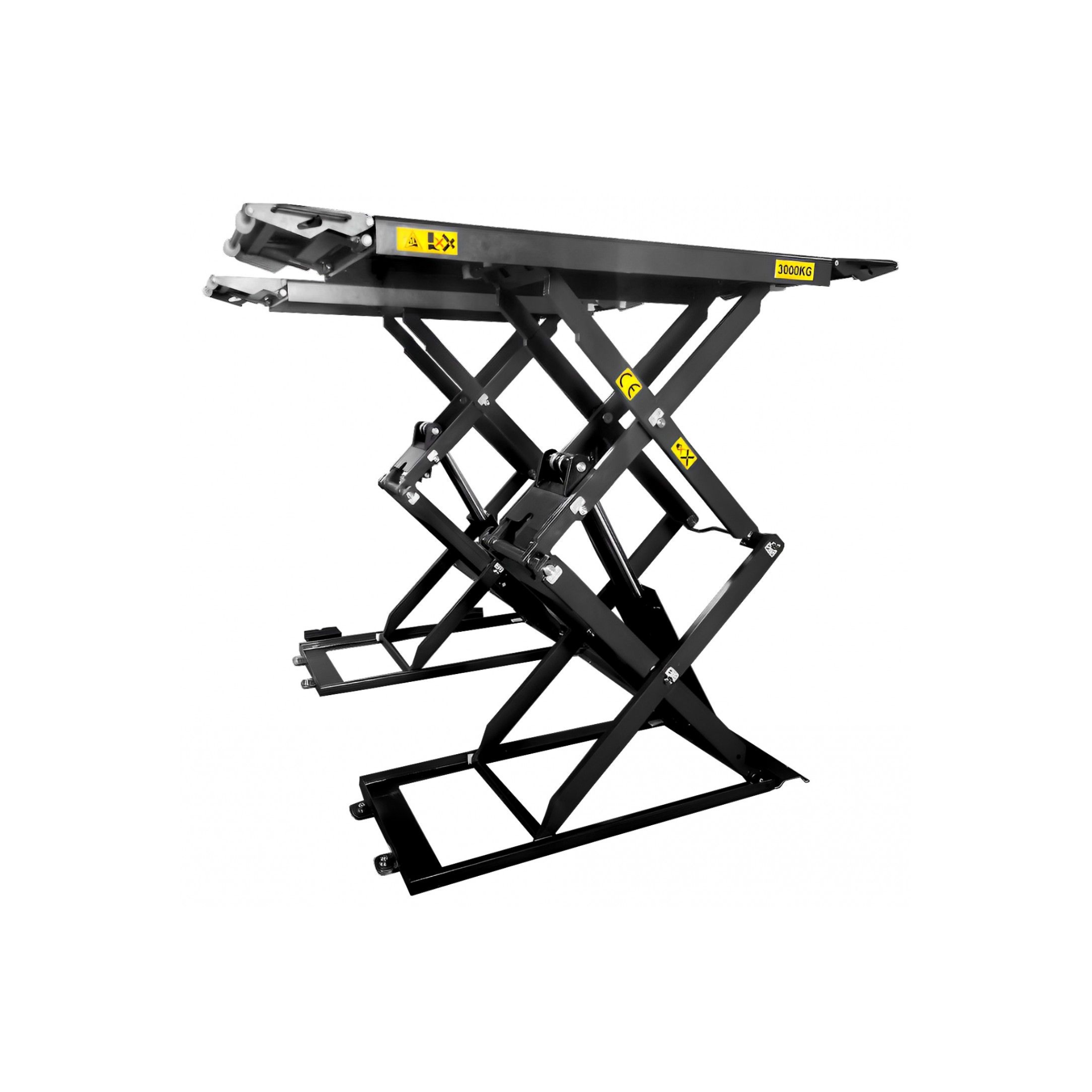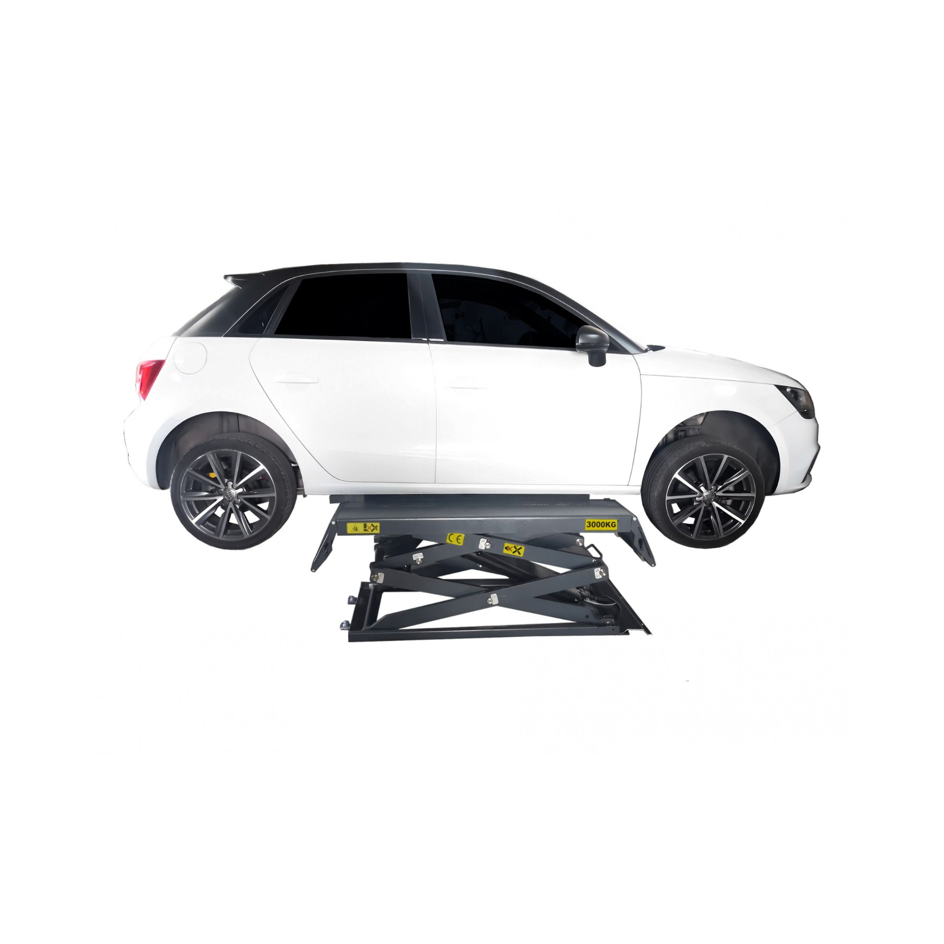 Características:Funcionamento: Eléctrico hidráulicoPeso suportado: 3TAltura elevação: 1950mmAltura inicial plataforma: 100mmComprimento plataforma: 1420mmLargura plataforma: 650mmTempo subida: ≤50sTempo descida: ≤60sComprimento total: 2010mmLargura total: 2200mmPeso: 885kgVoltagem: AC 380VPotência: 2.2kwÓleo hidráulico: 18LTemperatura de funcionamento: 5-40℃Humidade trabalho: 30-95%Ruído: < 76dbTemperatura armazenamento: -25℃~55℃Local instalação: InteriorDescrição:• O elevador pode levantar vários tipos de veículos cujo peso não ultrapasse os 3000kg• É adequado para a manutenção e teste nestes• Este modelo é móvel, tem que ser utilizado num solo plano e em perfeitas condições• Estrutura de tesoura fina que se esconde, ocupando pouco espaço• Caixa de comandos independente e móvel, de baixa tensão• Com trinco mecânico de segurança, desbloqueio pneumático do trinco• Com válvula de segurança e equipamentos que protegem na eventualidade de explodir um tubo hidráulico• Componentes elétricos, hidráulicos de alta qualidade fabricados em Itália, Alemanha, Japão• Opção de descida manual no caso de interrupção da energia elétricaNOTA:• Compatível com borracha Ref: 981015B18040 e com borracha Ref: 981015B18080Dimensões de Embalamento:
