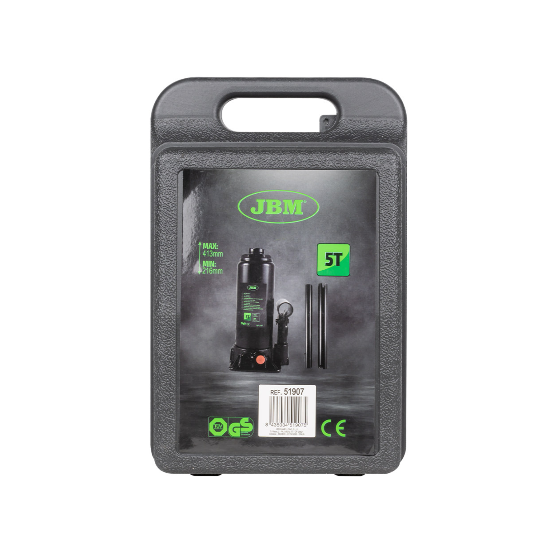 Macaco Hidráulico tipo Garrafa 5T com caixa plástica