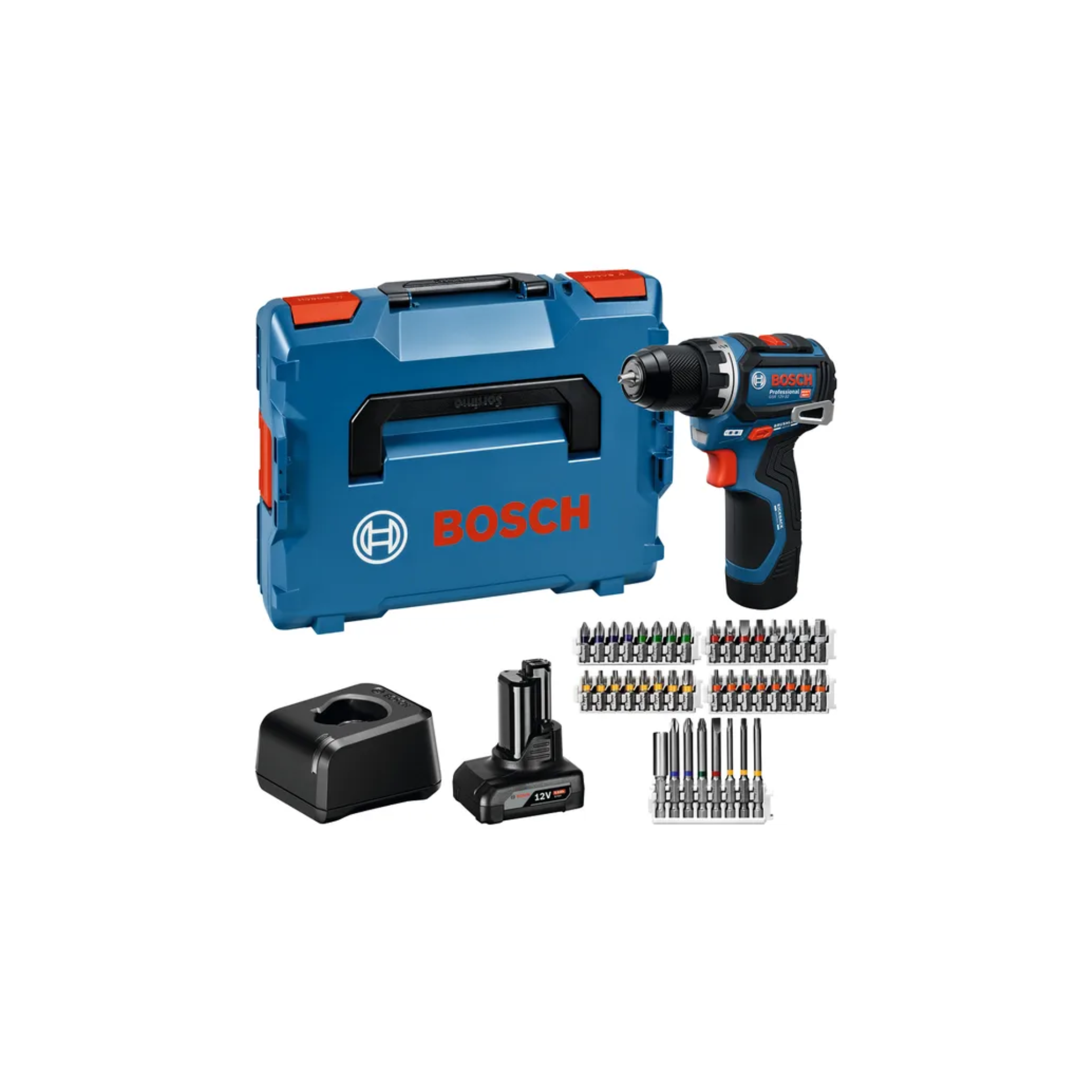- GSR 12V-32 Aparafusadora + 2x 2.0ah + GAL 12V-20 + set de 40 acess. + L-Boxx