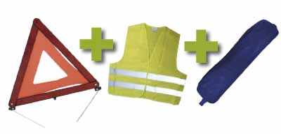 KIT EMERGASNCIA ESTOJO AZUL CON RIBETE + COLETE REFLECTOR + TRIA‚NGULO DE SINAL