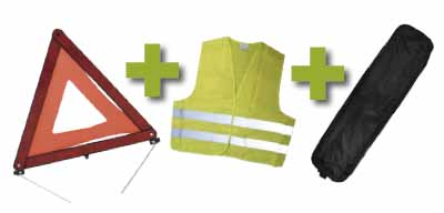 KIT EMERGASNCIA ESTOJO PRETO CON RIBETE + COLETE REFLECTOR + TRIA‚NGULO DE SINA