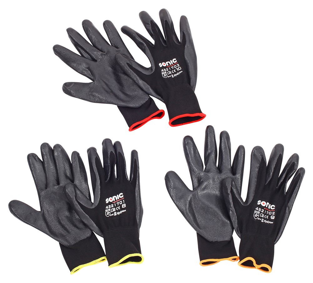 Luvas de Nylon com Base de Nitrilo Sonic - tamanho 8 (par)