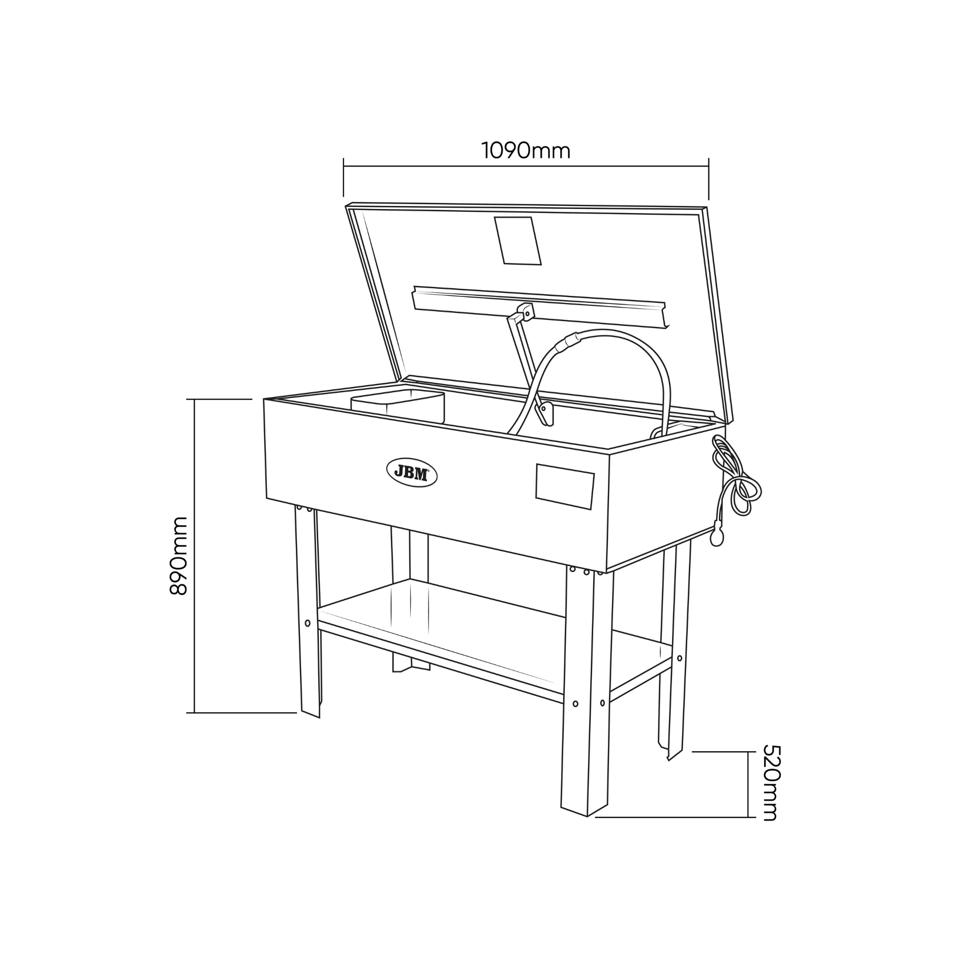 O equipamento JBM 52980 é uma máquina elétrica de limpeza de peças com capacidade de 150 litros, ideal para uso profissional em oficinas e ambientes industriais.
