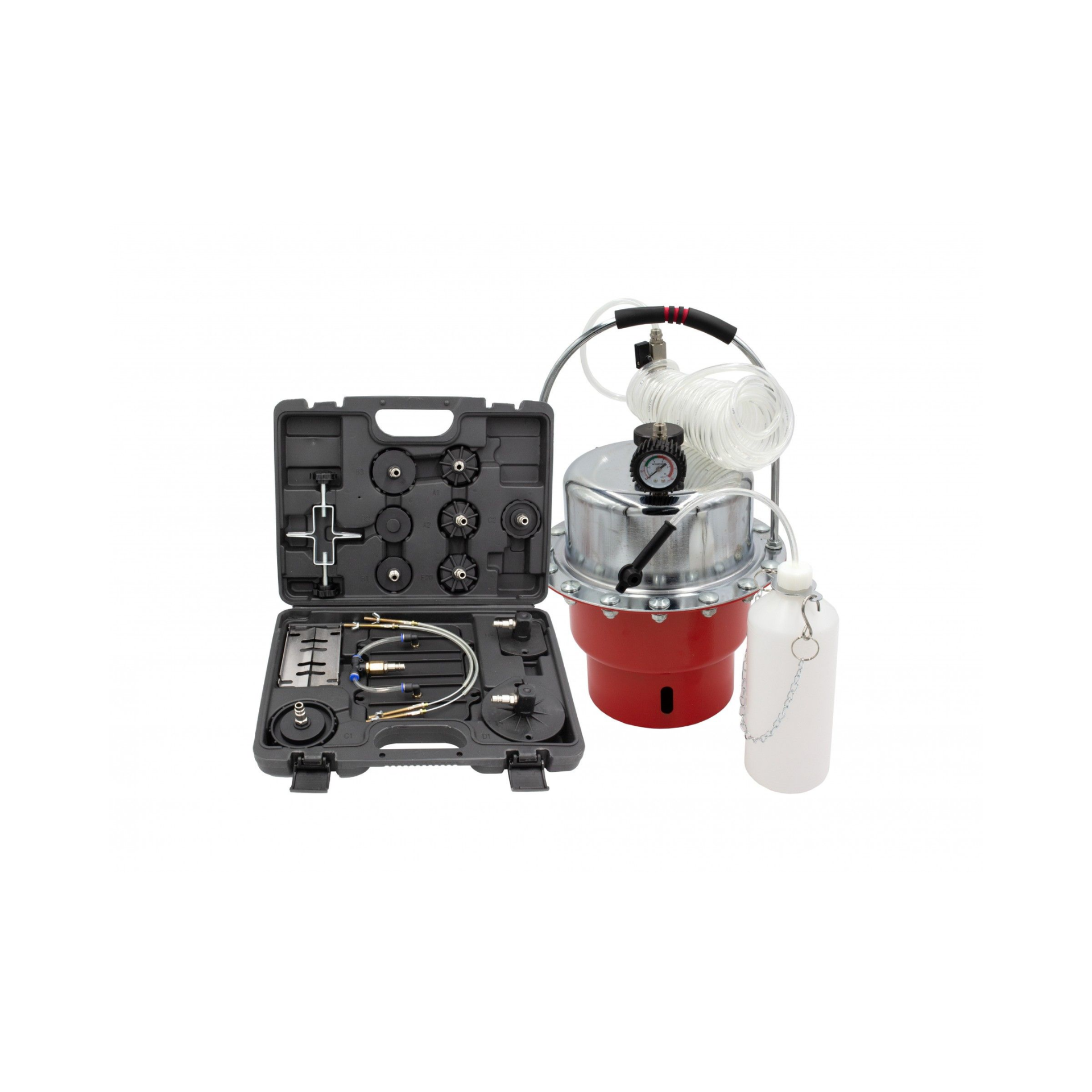Sangrador pneumático do líquido de travõesC06 2508Fabricante: Kroftools Disponibilidade: Desculpe, produto sem stock! 198,25 € Iva incluído Qty: ComprarAdicionar à lista de comparaçãoEnviar a um amigo Request a quote Características: Item Descrição Funções Remover e substituir o líquido da maioria dos tipos e modelos e sistemas de travão dos veículos, assim como o ar preso Funcionamento pressão de ar 10 a 40PSI, consumo 4.5CFM a 30PSI Entrada de ar Engate rápido macho 1/4” Camp. líquido do reservatório 5L Regulador de pressão Botão de controlo manual de bloqueio Manómetros de pressão 0~140PSI, intervalos 20PSI, marcações 20PSI Tubos de drenagem 2-12-1/2 (comp.) x 0.316 (dia.) em polegadas com poliuretano transparente e ponta borracha Mangueira de abastecimento líquido dos travões 3000mm, 3” (comp.) X 1/2” (dia.); poliuretano reforçado, engate rápido na extremidade com válvula de esfera Dimensões gerais 11” (diâm.) x 8.5” (altura) x 6.5 (diâm. base) altura total com a pega: 18 polegadas Garrafa de recolha 2.9 (alt.) x 4-3/4 (comp-) x 2-1/4 (lar.) 0,26 galão (um quarto) 1L Acessórios 11 adaptadores de cilindros master NOTA: A peça 4 é uma peça consumível, precisa de ser trocada depois de corrosiva. Membrana de Borracha, Ref: 2508-04Produtos relacionados Sangrador pneumático de travõesJ08 52191 - JBM J08 52191265,68 € Iva incluídoComprar Adicionar à lista de comparação Sangrador pneumático de travõesJ08 52191 - JBM J08 52191265,68 € Iva incluídoComprar Adicionar à lista de comparação