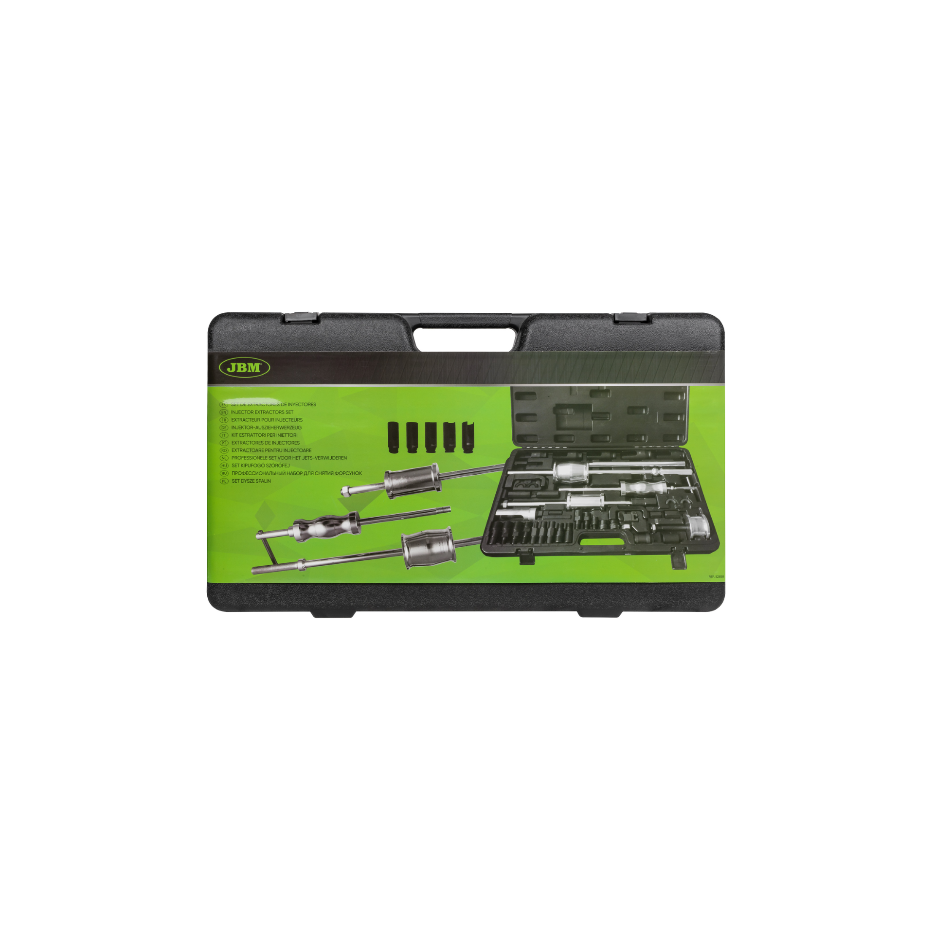 Jogo extração de injetoresJ08 52858Fabricante: JBM Disponibilidade: Desculpe, produto sem stock! 399,86 € Iva incluído Qty: ComprarAdicionar à lista de comparaçãoEnviar a um amigo Request a quote Adequado para a maioria dos injectores diesel, inclui vários adaptadores.Inclui:- 3 martelos deslizantes diferentes:- 1,6 kg, comprimento 160 mm;- 2.7kg, comprimento 460mm;- 5,1kg, comprimento 600mm.- 2 garras de tração com abertura de forquilha:- 13,7x18mm, comprimento 105mm;- 12,7x19mm, comprimento 130mm.- 5 chaves de fenda de 1/2” e 6 lados, comprimento 100mm. Tamanhos 25-27-28-29-30mm.- Extrator de injectores, design de manga, com casquilhos, diâmetro exterior 35mm; diâmetro interior 29mm;- Fuso M17x1.0.- Adaptador de extração com rosca externa, M27x1.0 (3 peças) e M25x1.0.- Adaptador de puxar com rosca interna, M27x1.0 (3 peças).- Adaptador para martelo de corrediça para extrator interno, externo e de garra.Produtos relacionados Jogo de sacar injetores completoC06 8549 - Kroftools C06 8549248,57 € Iva incluídoComprar Adicionar à lista de comparação Jogo de sacar injetores completoC06 8549 - Kroftools C06 8549248,57 € Iva incluídoComprar Adicionar à lista de comparação