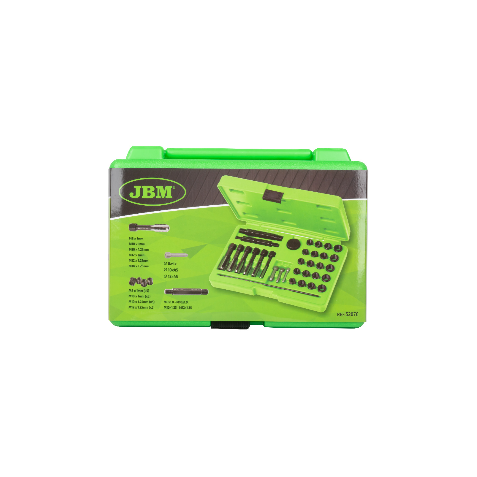 Jogo para reparar roscas de velas dieselJ08 52076Fabricante: JBM Disponibilidade: Desculpe, produto sem stock! 148,94 € Iva incluído Qty: ComprarAdicionar à lista de comparaçãoEnviar a um amigo Request a quote Solução rápida e eficaz para as velas de ignição da cabeça do cilindro.Contém ferramentas para uma inserção precisa e um sistema de guia para garantir um alinhamento correto. Diferentes tamanhos de adaptadores roscados (4) para os tamanhos mais comuns de velas de incandescência.Inclui:- Ferramenta de inserção - 2 unid.- Pega para a peça 8 - 1 unid.- Rosca M8 x 1,0 - 5 unid.- Rosca M10 x 1,0 - 5 unid.- Rosca M10 x 1,25 - 5 unid.- Rosca M12 x 1,25 - 5 unid.- Cabeças de inserção - 3 unid.- Haste de inserção de rosca - 1 unid.- Pastilha de corte M14 x 1,25 (para roscas M12 x 1,25) - 1 unid.- Pastilha de corte M12 x 1,25 - 1 unid.- Pastilha de corte M12 x 1,0 (para roscas M10 x 1,25) - 1 unid.- Inserto de corte M10 x 1,25 - 1 unid.- Inserto de corte M10 x 1.0 (para roscas M8 x 1.0) - 1 unid.- Inserto de corte M8 x 1.0 - 1 unid.